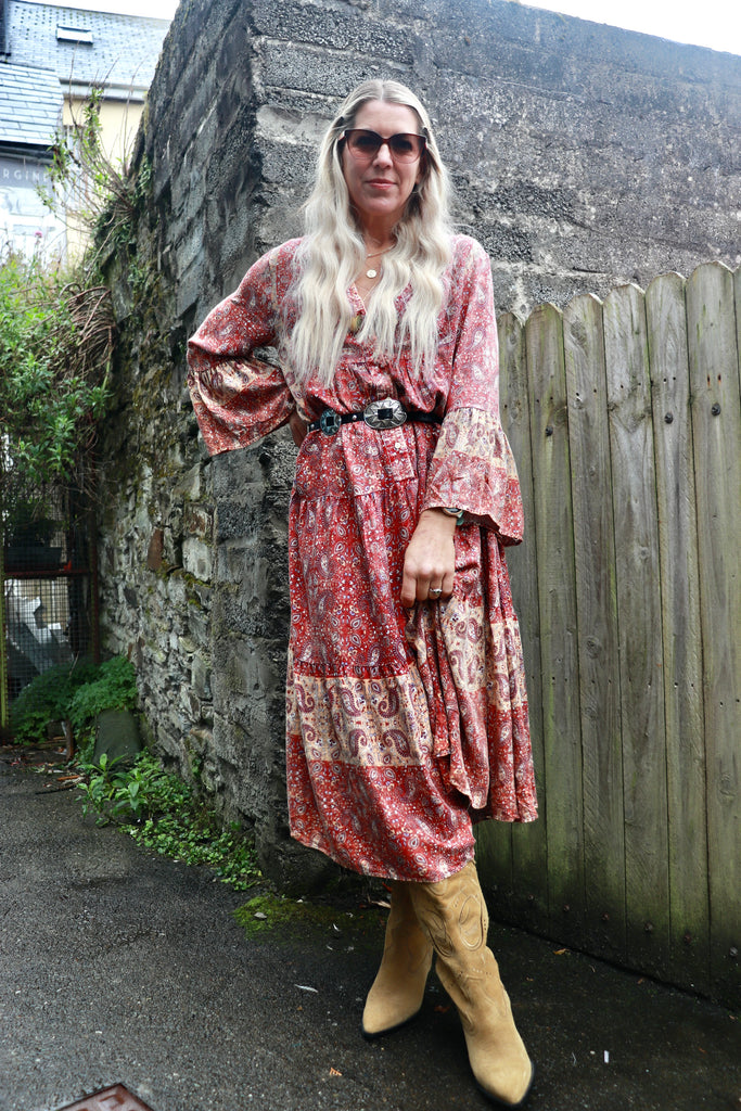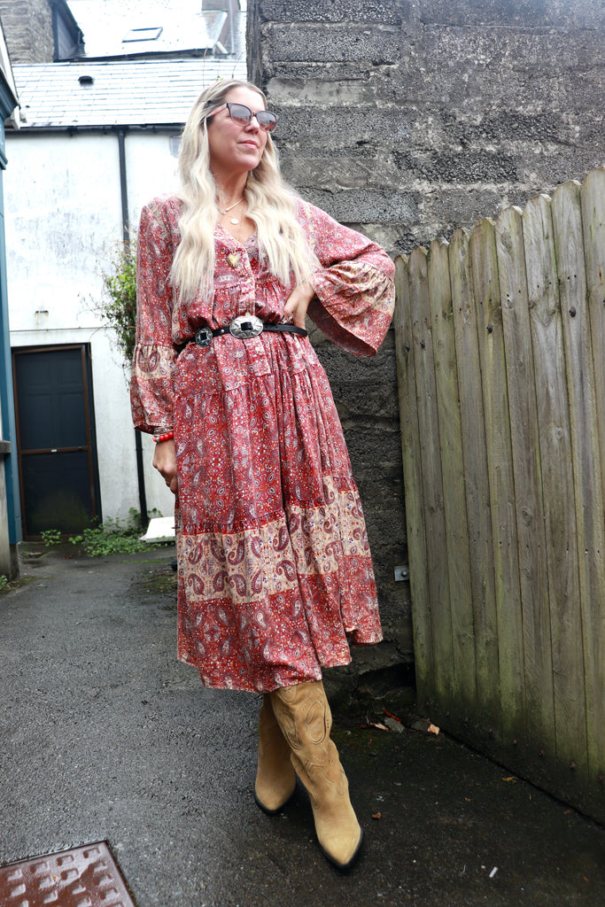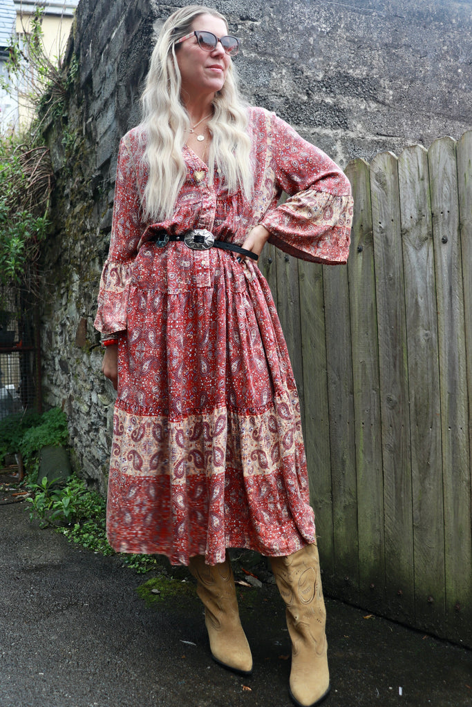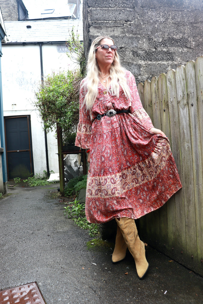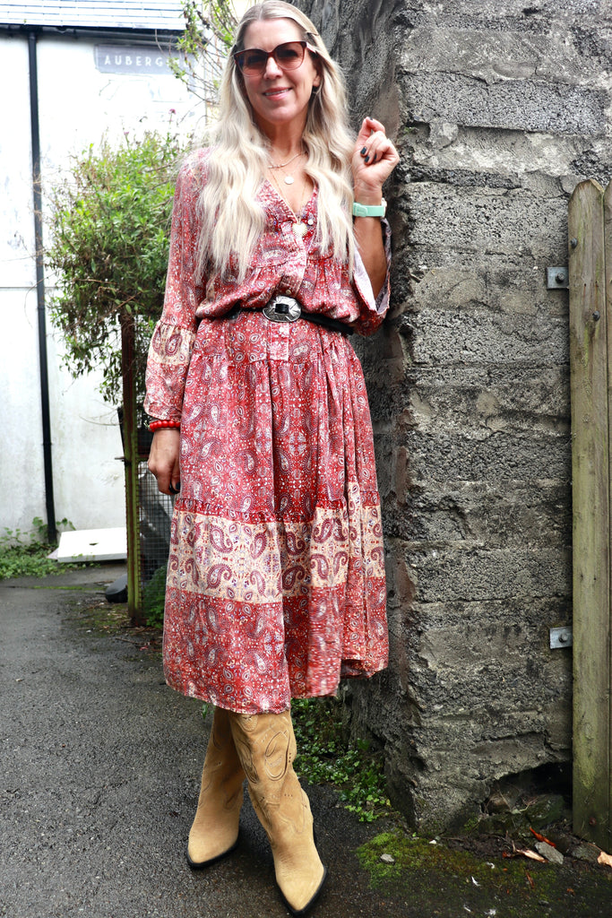 Red paisley midi dress