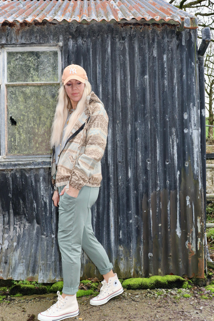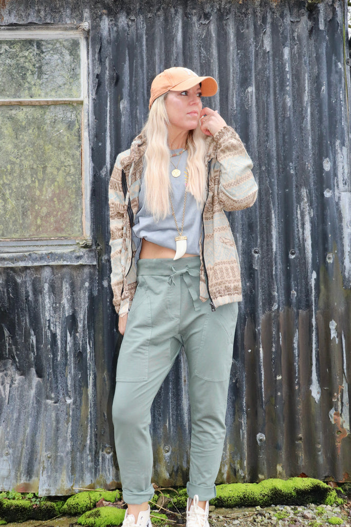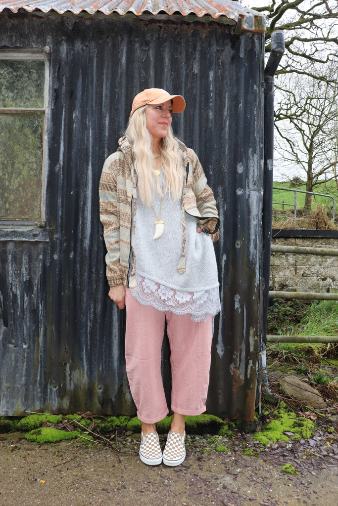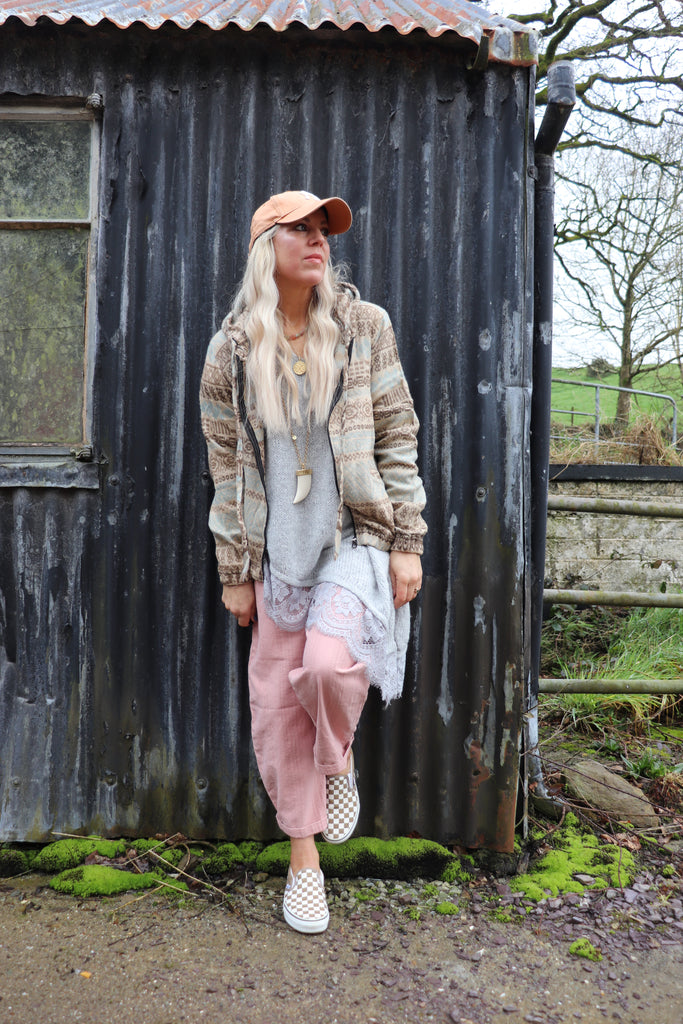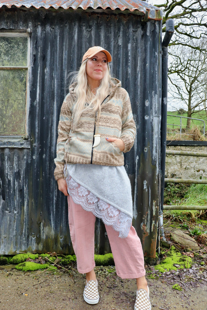 This hoodie has has a zip closure it has an elasticated waistband