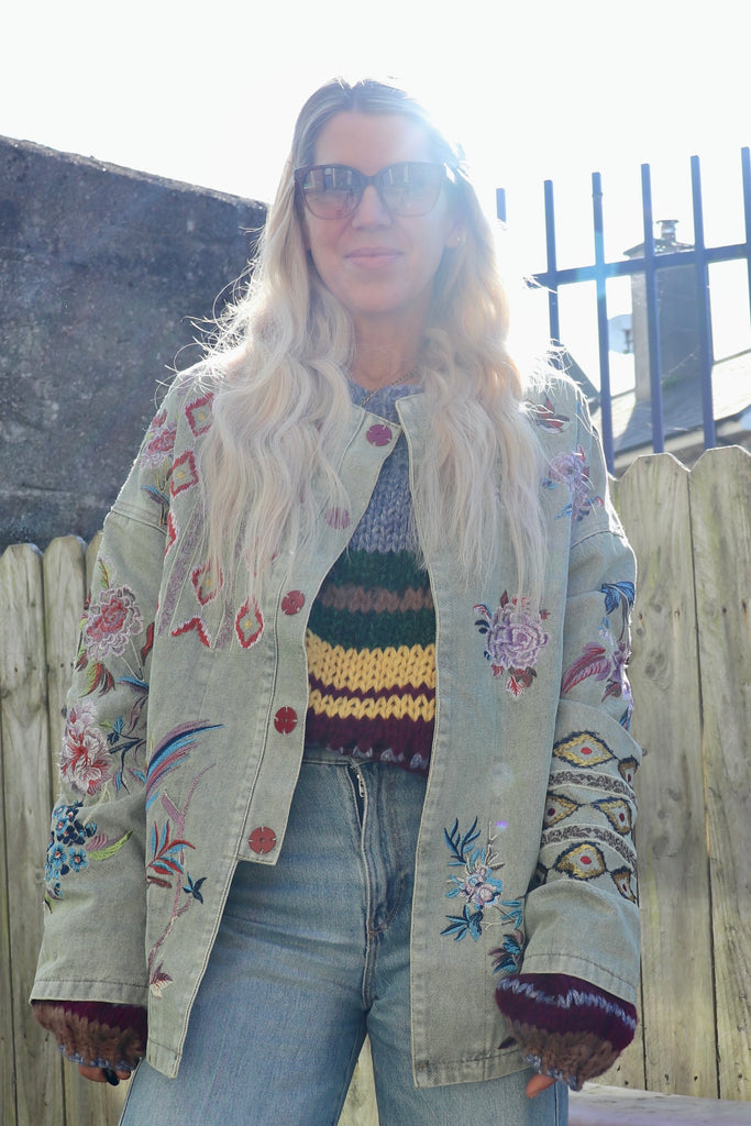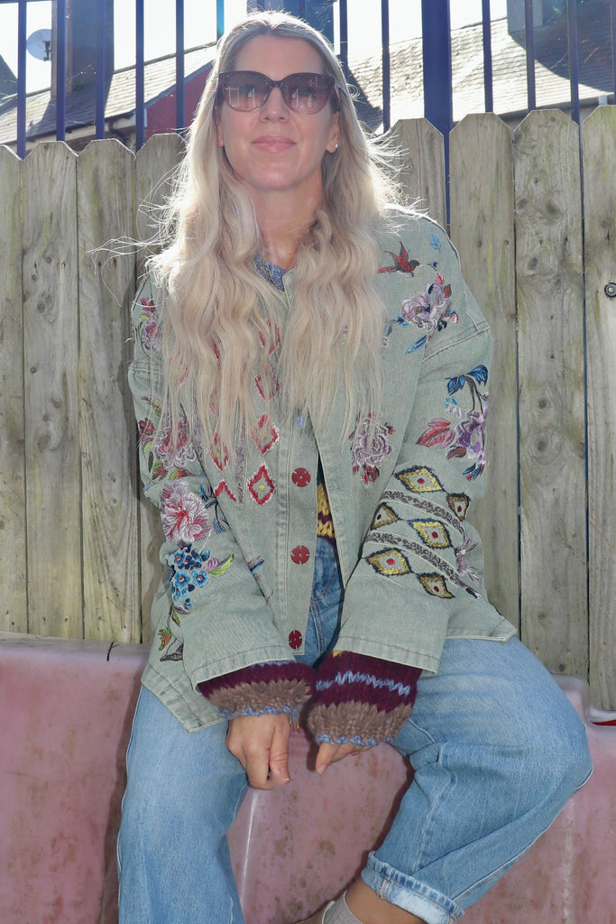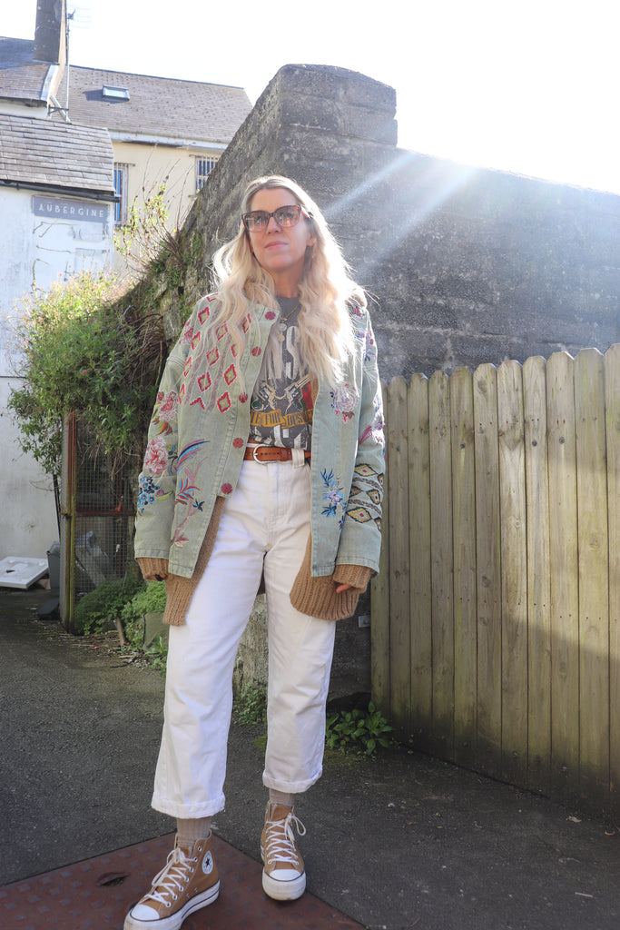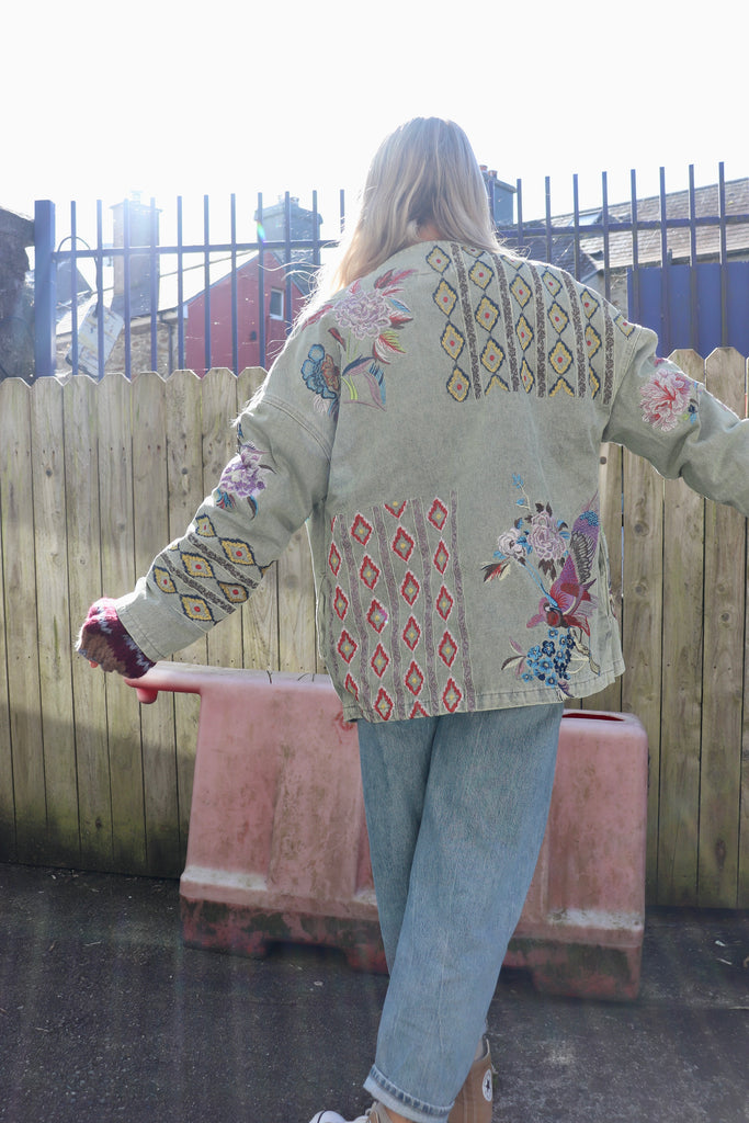 Embroidered embellished khaki jacket