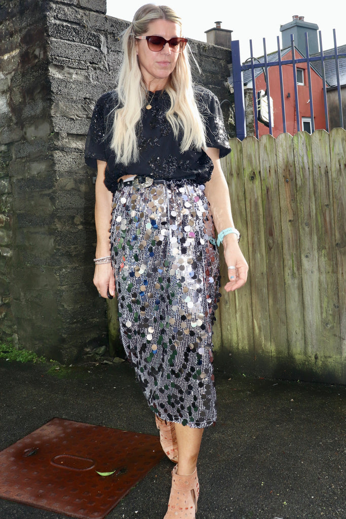 Floral sequin top (Midnight black)