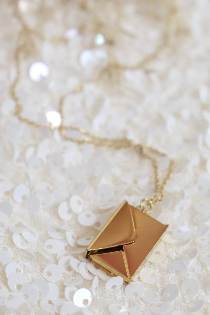 Has a hinge opening and a removable little gold love letter that says “Love you”