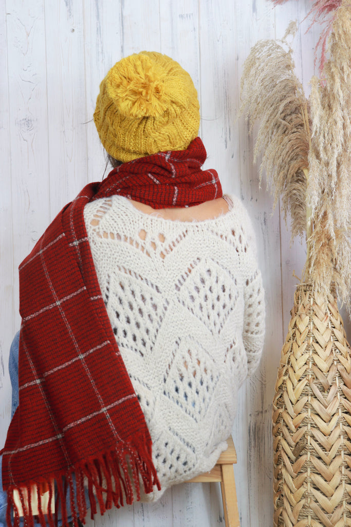 Mustard pom pom beanie