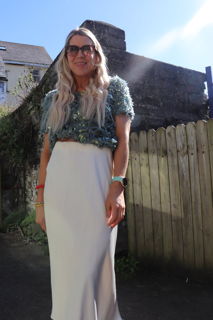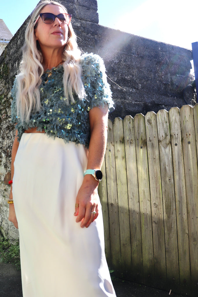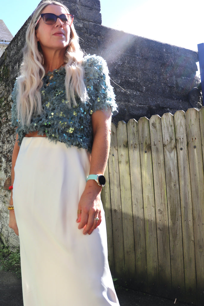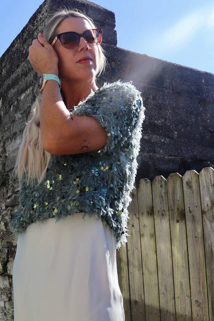 Sequin and feather detail top (Mint)