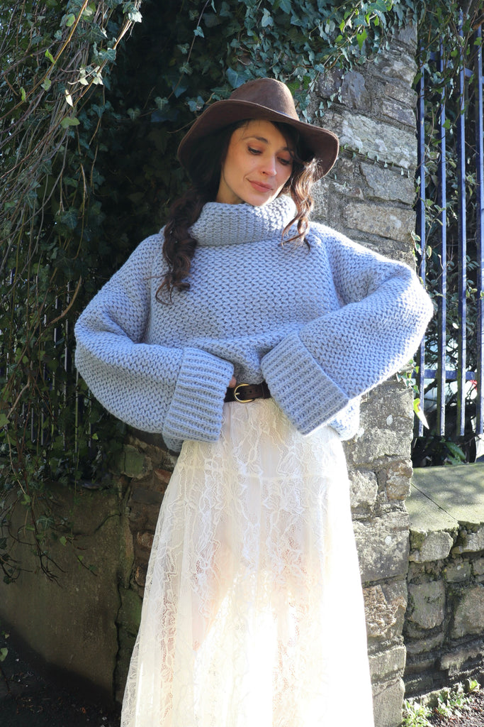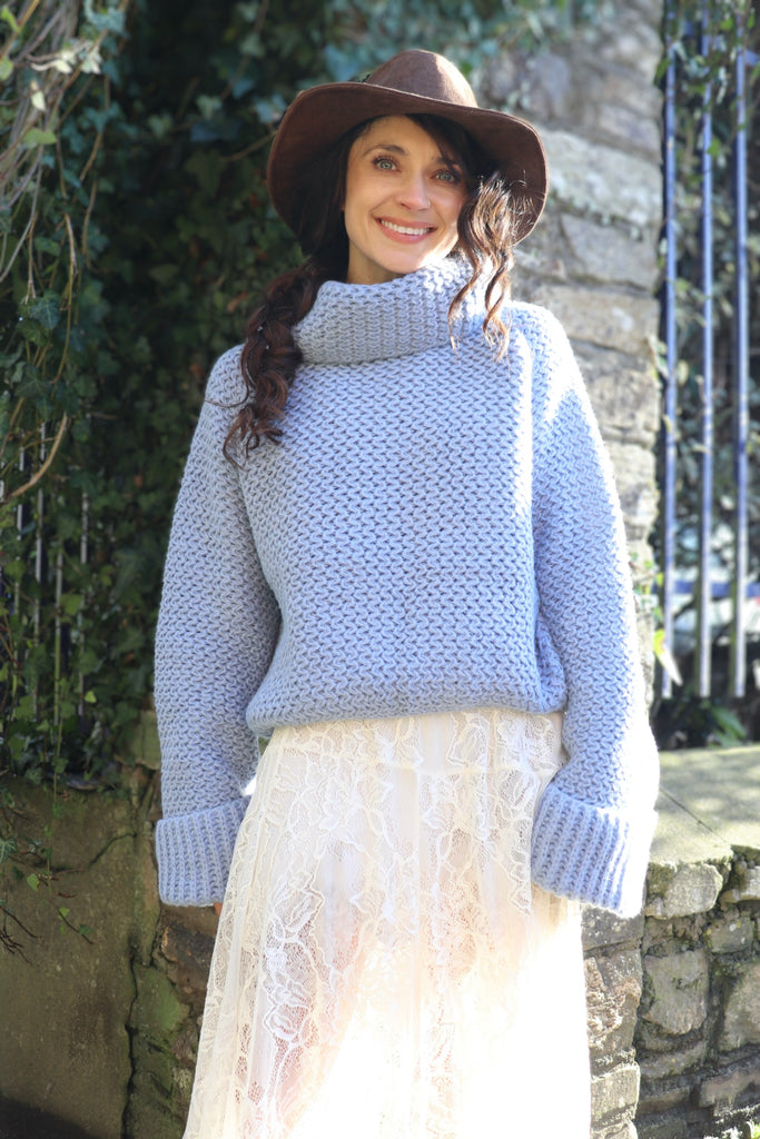 Waffle knit polo neck jumper